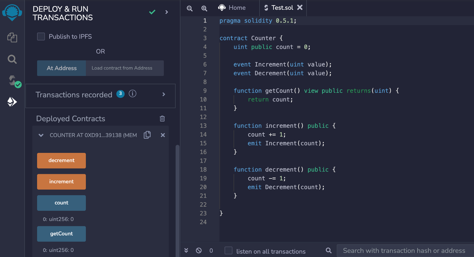 Today I went through the exercise of writing/coding a smart contract on the Ethereum blockchain. The programming language used to write the code is called Solidity which feels a lot like C++, but obviously way better. I am not a programmer nor am I trying to be, but I came across a site called Remix.ide that allows anyone to “develop, deploy, and administer smart contracts for Ethereum like blockchains and it can also be used as a learning platform (1).”